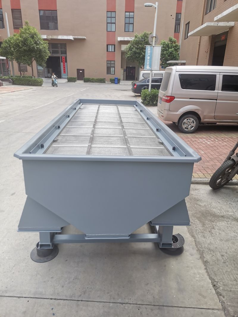 3、長方形直線振動(dòng)篩,可以向下調(diào)整排砂口端的篩網(wǎng)角度,利于物料靠重力排出;